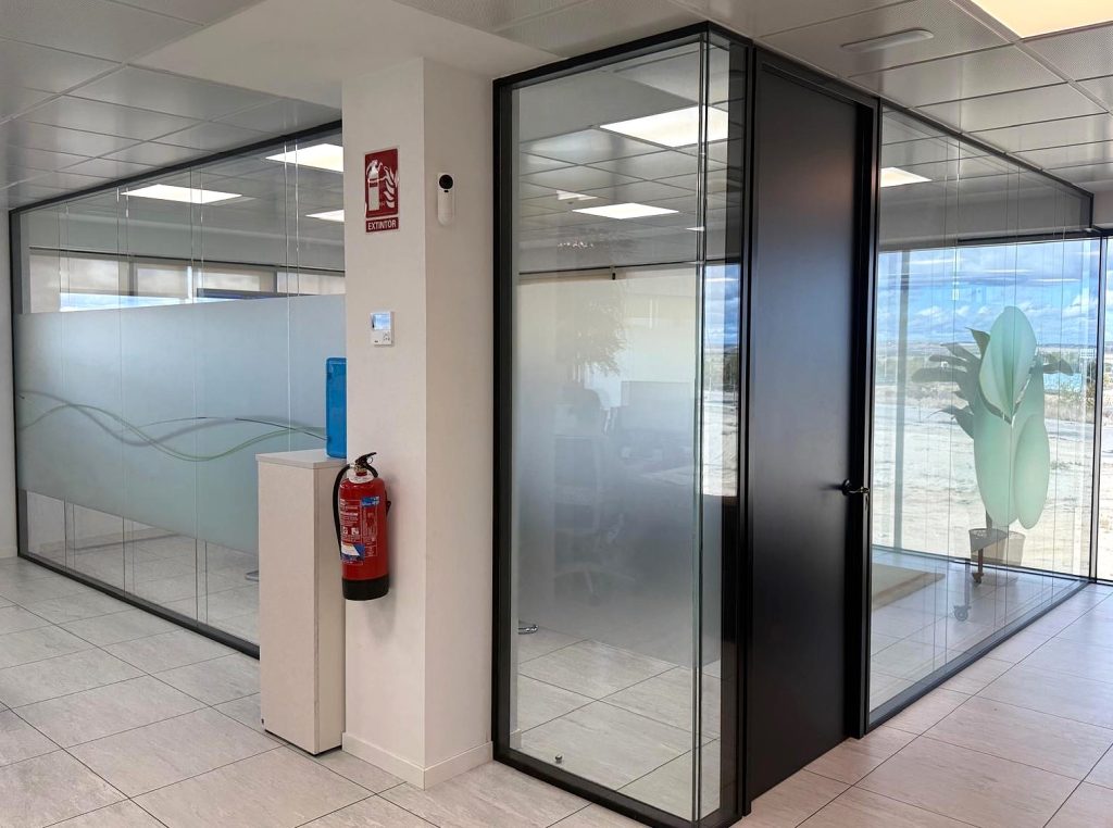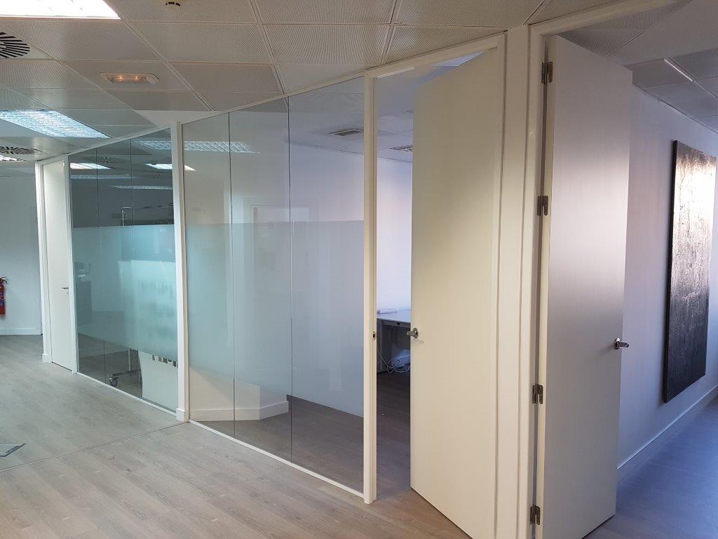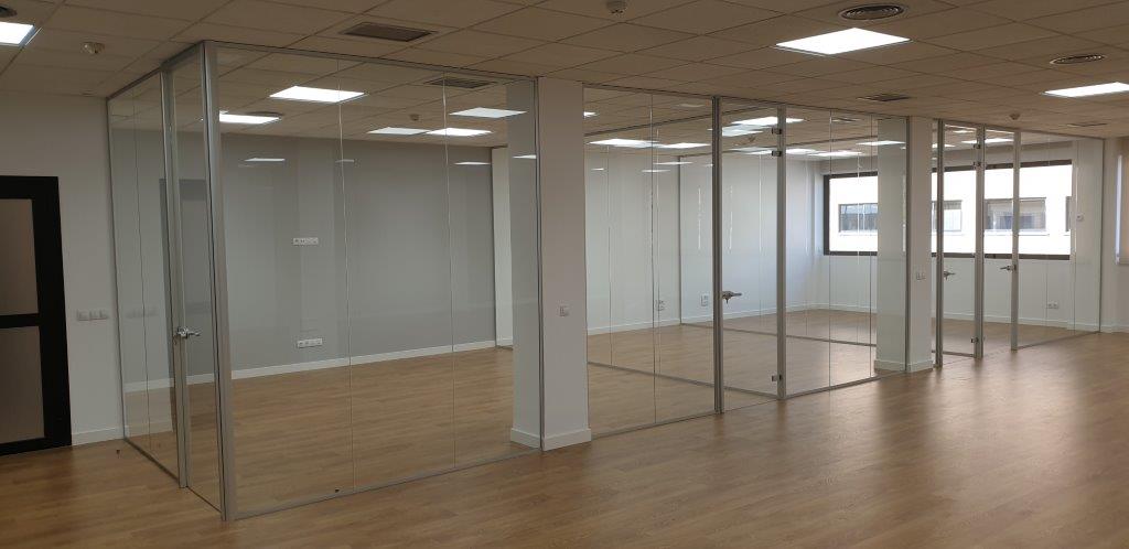 Las divisorias de oficina acristaladas tienen diferentes acabados de acristalamiento. Este tipo de divisoria de oficina Madrid está construido mediante un tabique acristalado de suelo a techo formado por perfilería de aluminio extrusionado y con el canto pulido. Además, sus acabados pueden ser de diferentes colores, acabado con persianas o acabado con vinilos. Con este tipo de divisorias de oficina obtendrás un estilo en el que se representa el estilo y la simplicidad.
